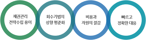다년간의 채권관리 시스템 구축, 컨설팅, 업무 노하우를 바탕으로 구축된 채권평가 시스템은 AMC, 신용정보사, 자사채권의 채권 평가에 활용할 수 있으며, 정확한 예상평가금액과 회수 예상금액을 도출하고, 이에 대한 Action Plan을 제공하는 우수한 제품입니다.